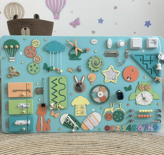 Busy board 23.6"x39.4" for Montessori playroom, Custom Name Puzzle, Personalized Fidget Toy